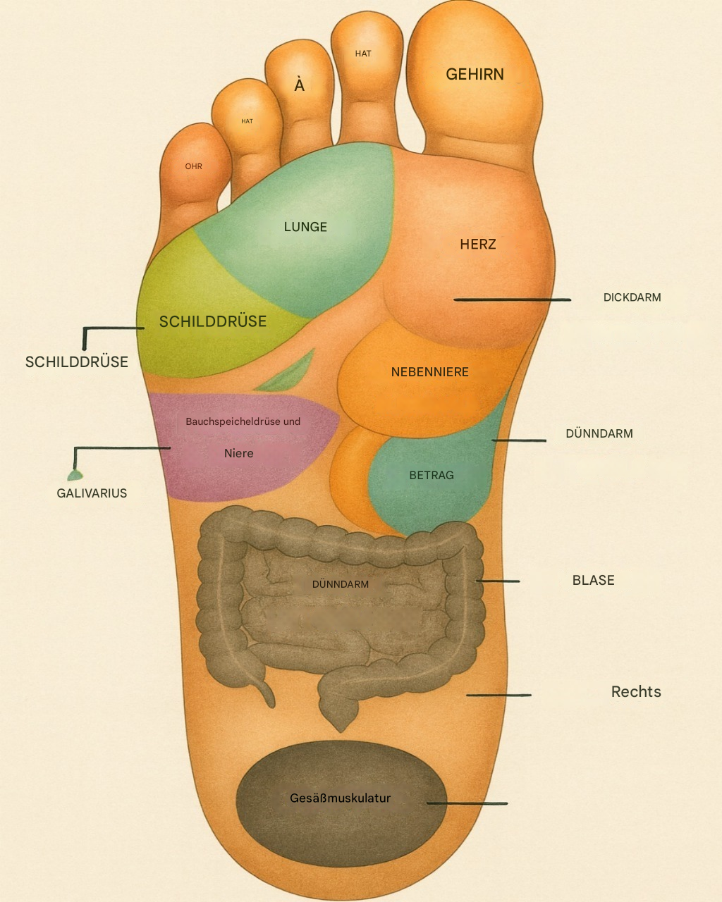 - pressing specific spots on the foot directly heals organs (brain, liver, heart, etc.)