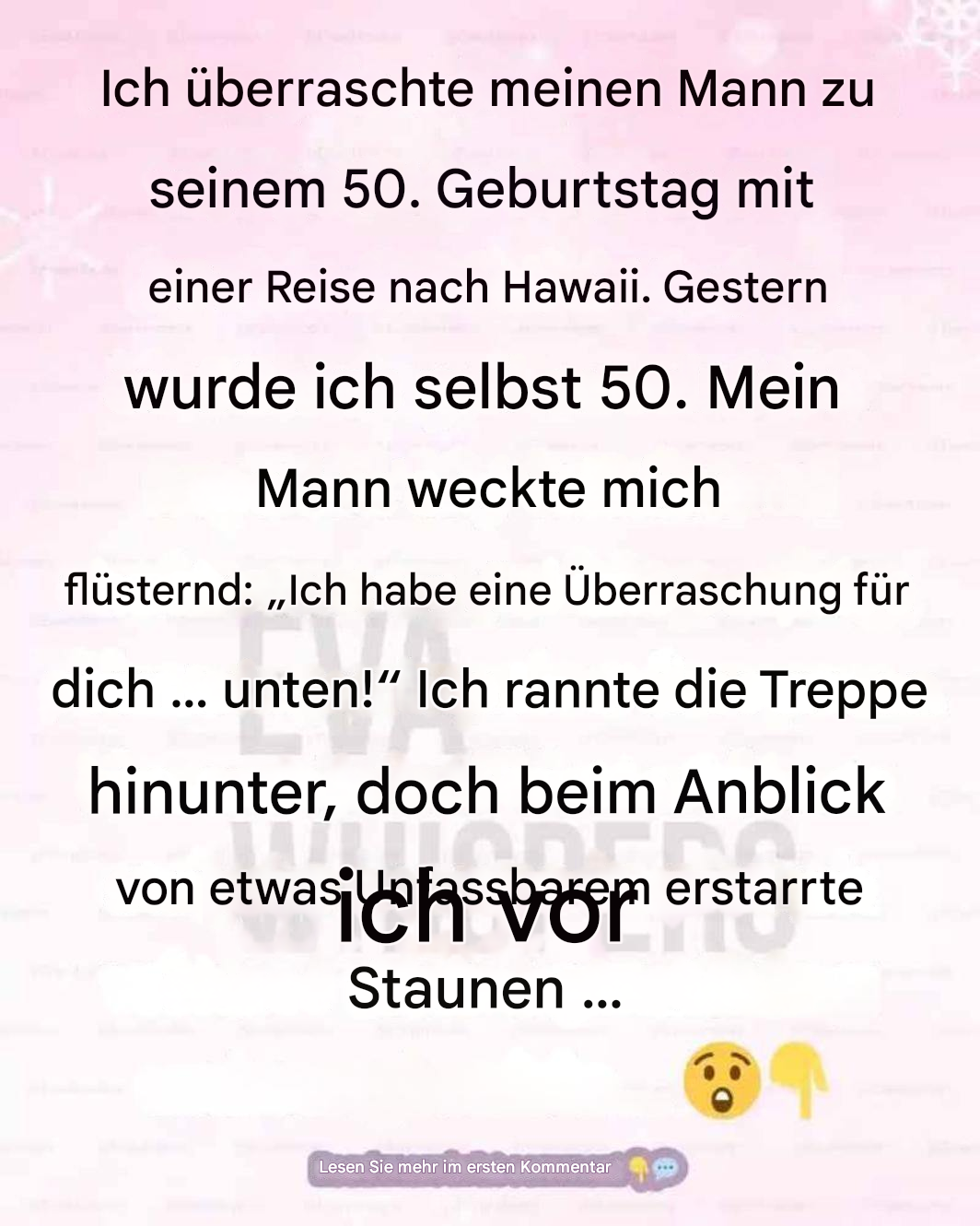 „Ich habe eine Überraschung für dich… unten“, murmelte er, und seine Stimme trug jene vertraute Mischung aus Schalk und Zärtlichkeit in sich, die mein Herz einst wie das eines Teenagers rasen ließ.